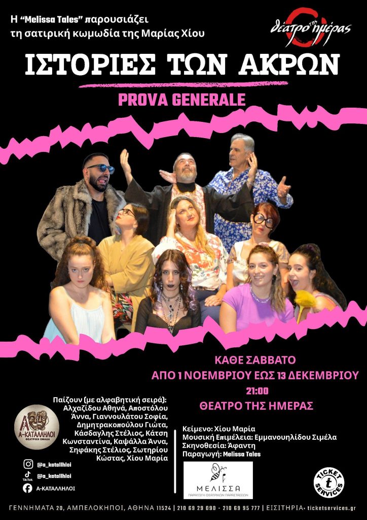 Αρχές του millenium και, σε μία συνοικία της Αθήνας, η κυρία Ρωξάνη διατηρεί Ινστιτούτο αισθητικής με κύριο αντικείμενο την περιποίηση ονύχων – εξού και το έργο μας τιτλοφορείται: «Ιστορίες των Άκρων». Ωστόσο, ένας «ψαγμένος» θεατής θα μπορούσε να πει πως ο τίτλος ουδεμία σχέση έχει με τους όνυχας -μανικιούρ, πεντικιούρ και τα ρέστα- αλλά πως επιλέχθηκε γιατί οι ηθοποιοί (ο Θεός να τους κάνει…) υποδύονται (λέμε τώρα…) καθημερινούς ανθρώπους που ζουν ιστορίες… ακραίες!